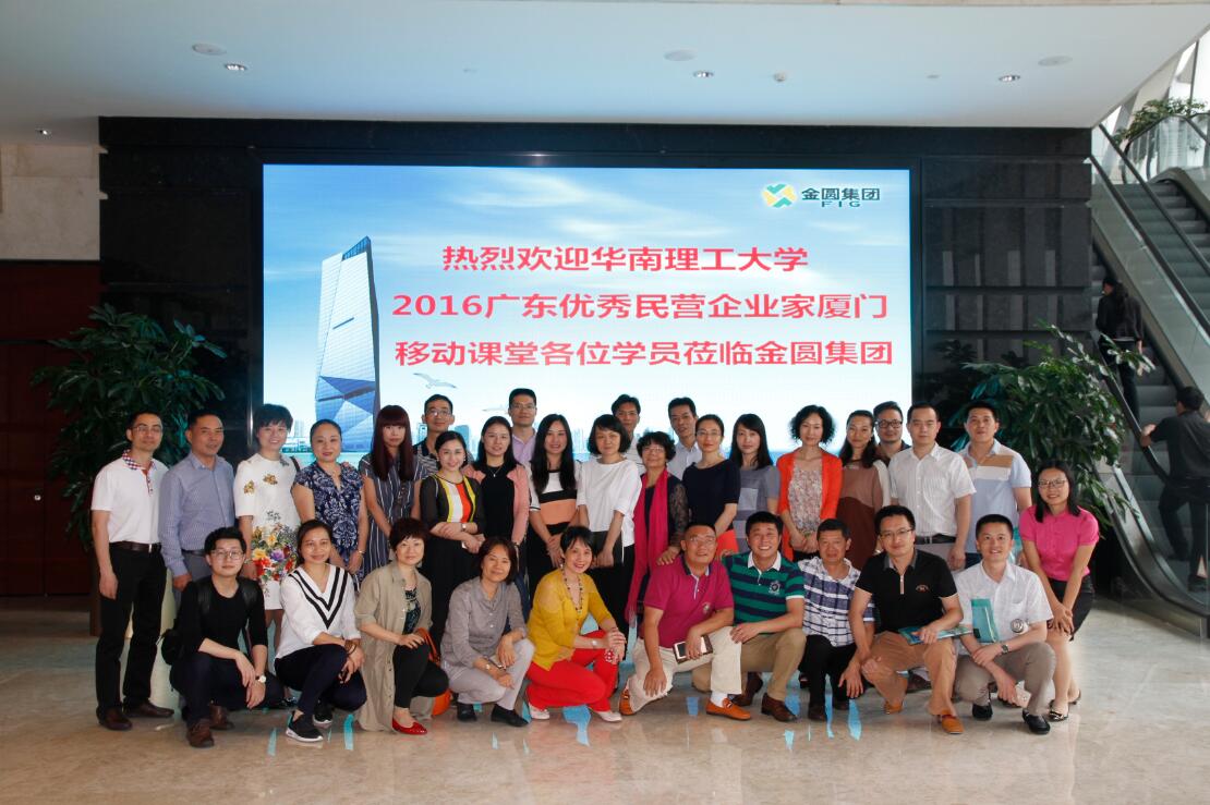 513日下午,华南理工大学2016广东优秀民营企业家厦门移动课堂学员一行34人到访金圆集团参观交流。粤企学员们首先来到两岸金融中心展厅,观看两岸金融数字沙盘和规划展板,随后双方在43楼会议室举行座谈交流,集团战略发展部、金融学院、信托公司、创投公司、金圆资本等部门及子公司负责人参加座谈。