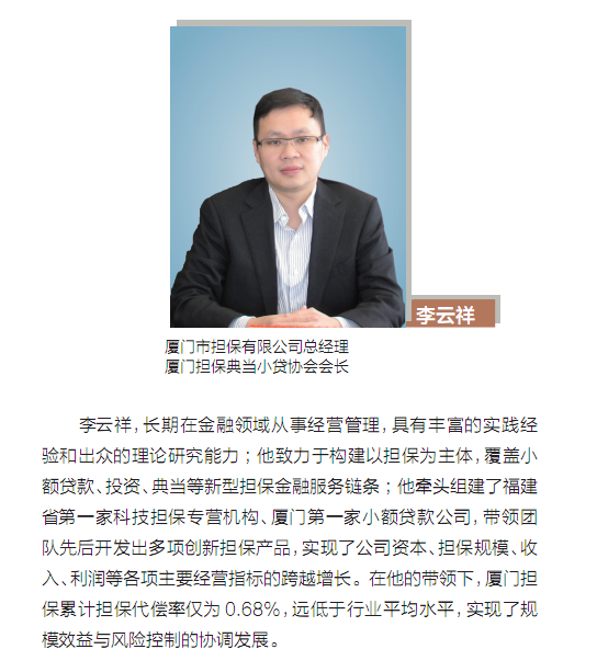 近日,《中国担保》十周年特刊公布了全国优秀担保机构及担保人评选结果。面对上千家担保机构的激烈竞争,厦门市担保有限公司凭借身后专业实力和良好经营成效,荣获全国“最具成长力担保机构”称号,李云祥总经理荣获全国“最具影响力担保人”称号,是全省唯一一家同时荣获上述两项殊荣的担保机构。《中国担保》由“全国中小企业信用担保机构负责人联席会”主办,是承接政府、金融、投资、担保的桥梁,由国家工业和信息化部中小企业司指导的中国中小企业信用担保业唯一综合性权威期刊,创刊十周年间深受担保业界的广泛认可。