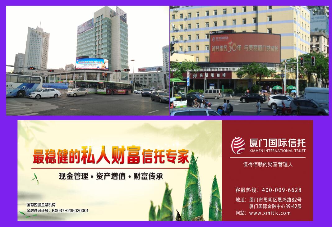 5月31日,厦门国际信托户外形象广告同时在厦门岛内三处黄金地段led屏幕上亮相。