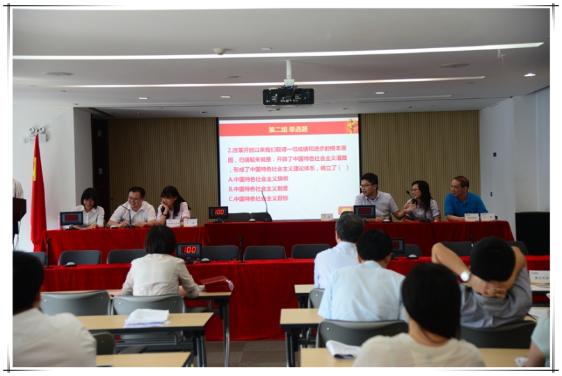 为纪念中国共产党成立95周年,扎实推进“两学一做”学习教育的深入开展。8月24日,金圆集团“两学一做”党章党规知识竞赛在48层会议室隆重举行,本次比赛共有11支代表队33名选手参赛,集团纪委书记黄威飘出席此次活动。