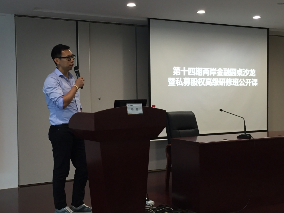 2016年9月29日上午,由金融学院主办的第十四期两岸金融圆桌沙龙暨私募股权高级研修班公开课在厦门国际金融中心大厦48f顺利举行。此次公开课邀请到了戈壁创投合伙人徐晨老师,与学员们一起分享投资理念。徐晨老师拥有超过十年的风险投资行业经验,是中国风投行业最年轻的创投合伙人之一,成功的参投了csdn、旅行者、数码媒体集团、途牛旅游、移动传媒等知名的行业领军企业。