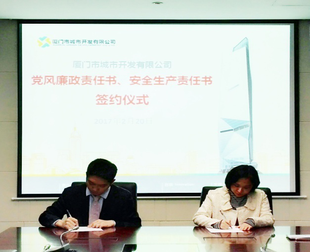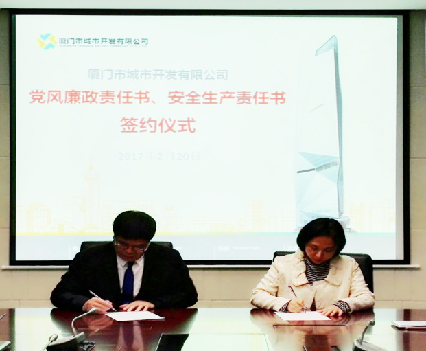 2月20日上午,城开公司黄昆明董事长主持召开2017年城开公司党风廉政责任书暨安全生产责任书签订仪式,公司全体人员参加。
