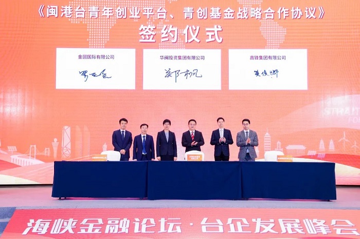 第十五届海峡论坛“海峡金融论坛·台企发展峰会”上,金圆国际携手华闽投资集团、高锋集团共同签署“闽港台青年创业平台”及青创基金战略合作协议。
