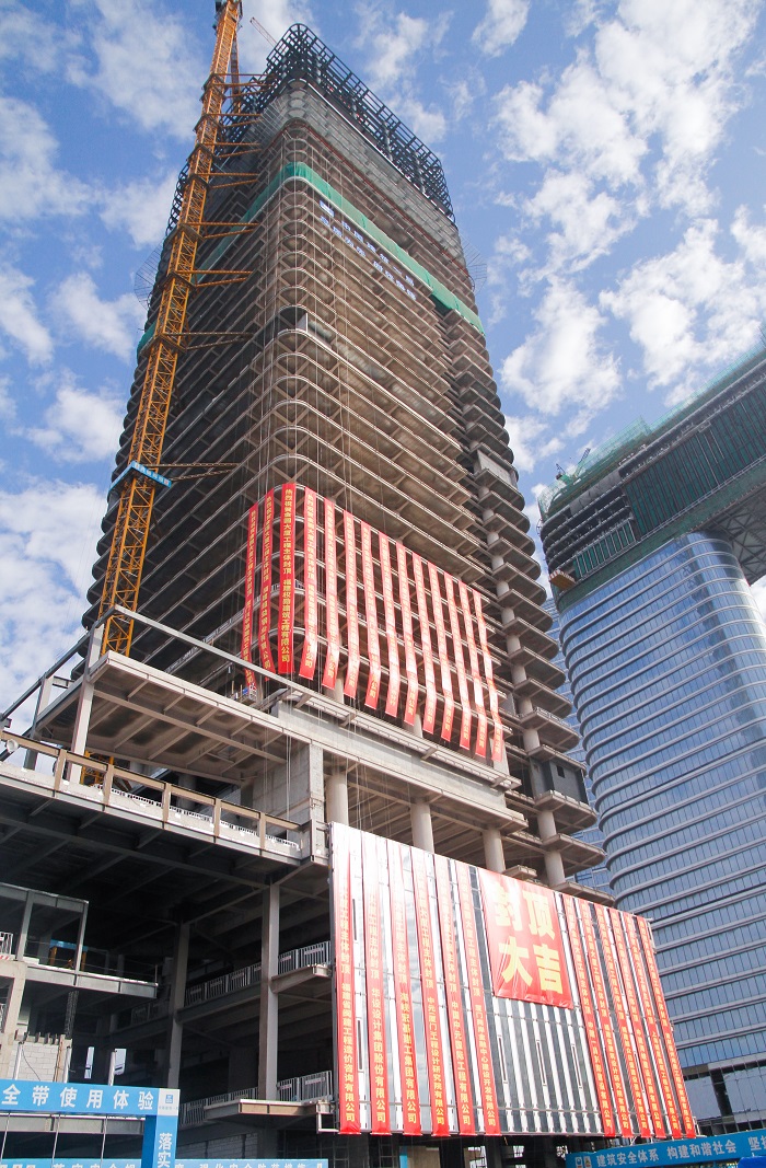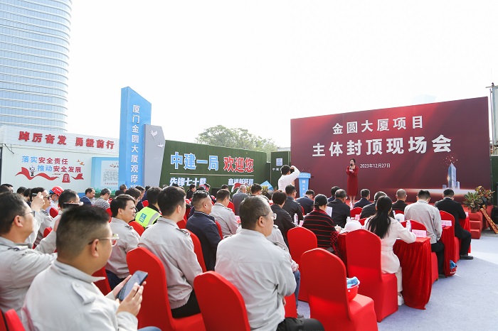 金圆集团、金圆开发公司以及设计单位中元国际、总包承建单位中建一局、幕墙施工单位中建海峡、监理单位越众日盛等各方相关领导出席现场,共同见证这一重要时刻。