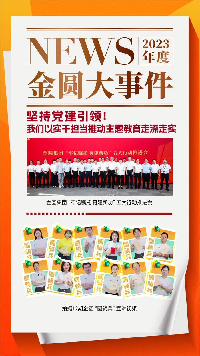 2023年,金圆集团掀起全面学习贯彻党的二十大精神、推动主题教育走深走实的热潮。集团党委领导班子成员带头学习、带头调研、带头整改,开展“牢记嘱托 再建新功”五大行动、拍摄12期金圆“圆骑兵”宣讲视频,在基层营造浓厚学习氛围;动员超200名中层和骨干开展近60项专题调研,在集团大兴调查研究之风;高质量完成2个专项整治项目和13个问题整改、15个办实事项目,推动修订33个制度、新建20个制度,推动集团全面提质增效。