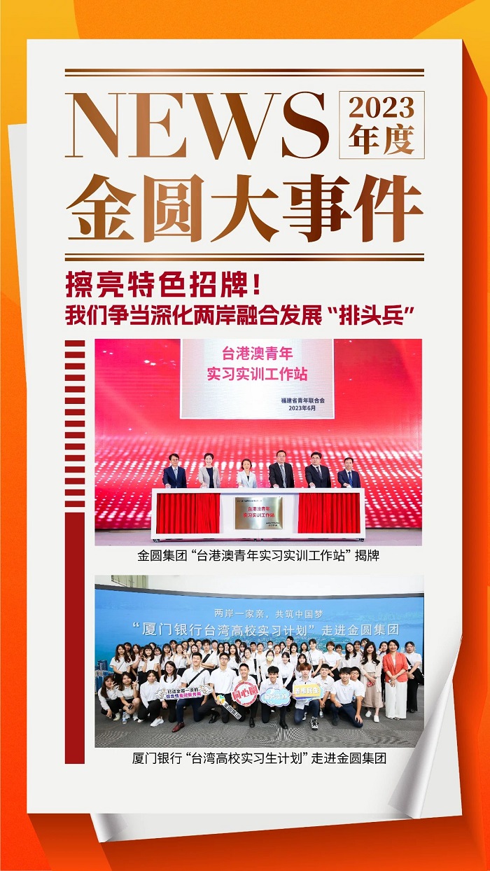 2023年,金圆集团主动融入两岸融合发展示范区建设,合作支持海峡青年论坛、海峡金融论坛?台企发展峰会,设立“台港澳青年实习实训工作站”“闽港台青年创业平台”,吸引近千名台籍学生参与文化交流、实习实训活动。金圆统一证券成为大陆唯一非台籍全国台企联副会长单位,助力台玖精密成功挂牌新三板、新麦机械申报深交所创业板;厦门银行推出“薪速汇”“台e贷”等特色产品,打造两岸金融合作样板银行。