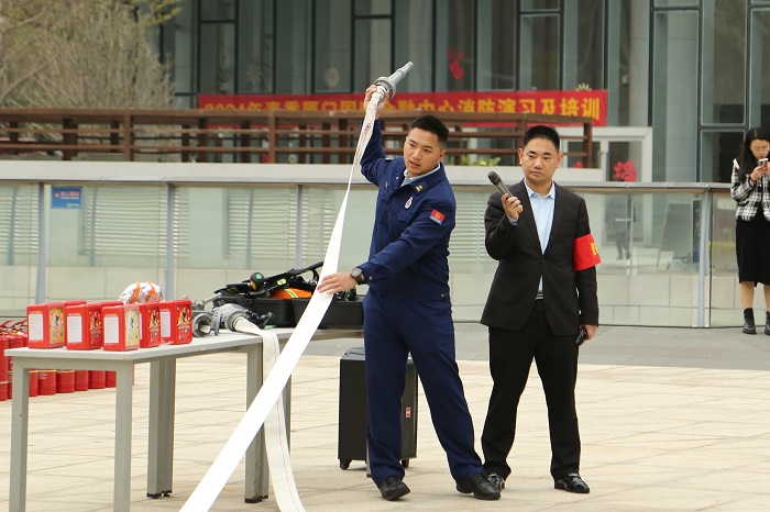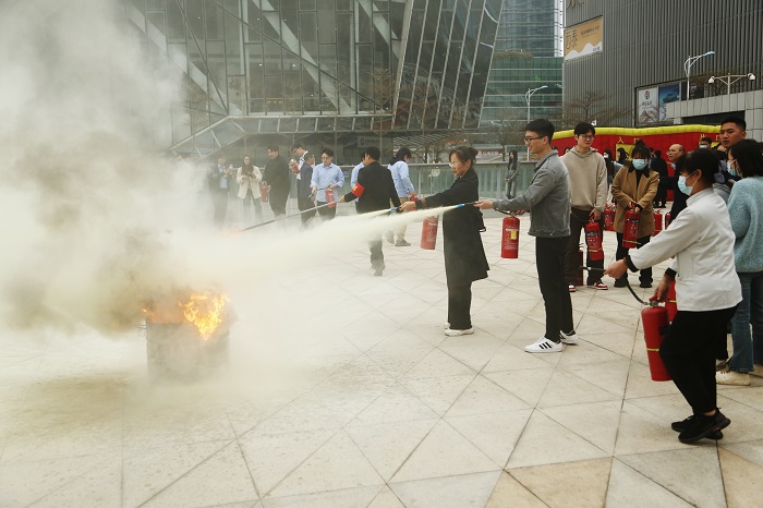 在灭火实操环节,思明区消防救援大队张警官讲解了灭火器使用原理及相关注意事项。参演人员按照“一提二拔三握四按”的步骤,正确使用灭火器进行灭火,通过亲身操作,掌握灭火器使用方法,提高抵御和应对突发火灾事故的能力。
