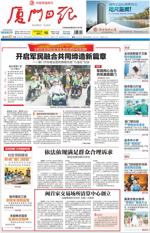 刊发于2016年8月16日《厦门日报》头版