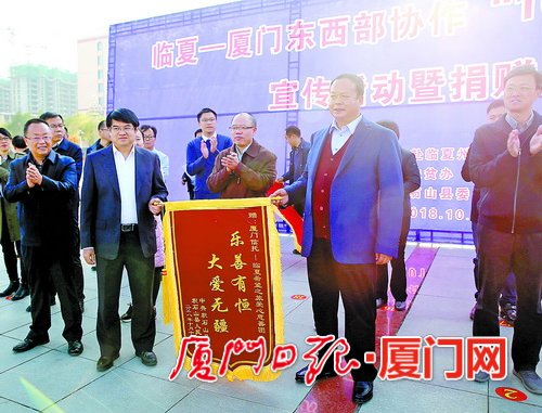 临夏希望之旅慈善信托获得中共积石山县委、积石山县人民政府授予的乐善有恒、大爱无疆锦旗。(厦门国际信托供图)