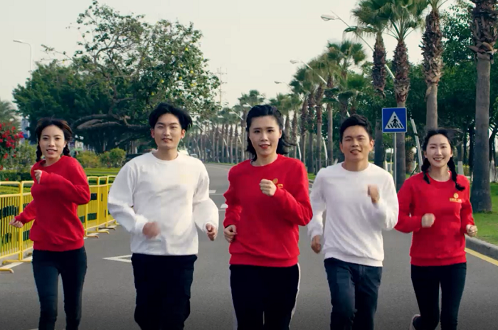 张迎婷(中间)和金圆统一证券的同事们一起锻炼