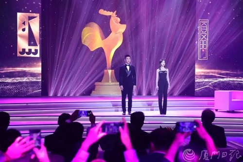 在ar等技术相伴下,知名演员周冬雨和杜江共同“点亮金鸡”,开启电影元素与城市人文结合的元宇宙创意ar秀。(厦门日报记者 黄嵘 摄)