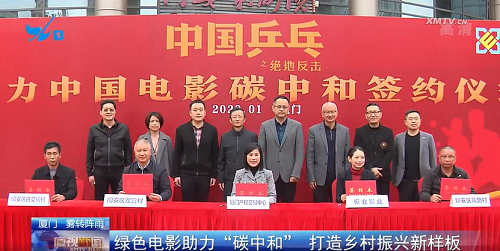 1月11日上午,春节档电影《中国乒乓之绝地反击》助力中国电影碳中和签约仪式在同安举行,打造“双碳战略 影视文化 乡村振兴”的新机制、新样板。