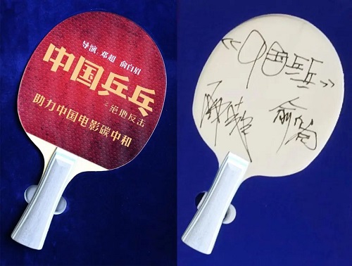 纪念球拍以及纪念球服让电影导演签字,拿到厦门产权交易中心体育资源交易平台上公开竞价,所有的竞价所得我们将用来购买同安区、翔安区三个村的农业碳汇。