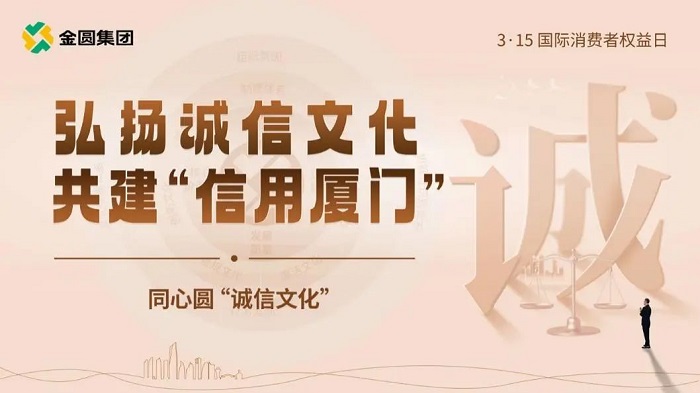 当前,厦门正大力弘扬诚信文化,建设“信用厦门”。诚信文化是金圆集团“同心圆”大发棋牌老版官方网址的文化的重要组成,通过各业务板块的金融服务触角将诚信文化理念带到客户身边,正是金圆集团加强诚信文化建设的重要举措。