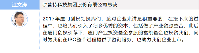 与此同时,我市还积极运用市产业投资基金,助推企业融资上市。罗普特致力于人工智能产品研发和行业实战应用,也是厦门第二家登陆上海证交所科创板的上市企业。企业的上市发展,离不开厦门创投的助力。