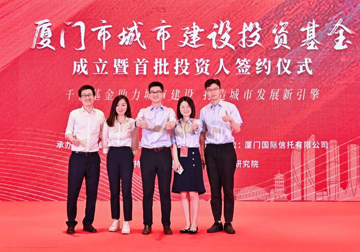 厦门国际信托青年工作专班在厦门市城市建设投资基金成立仪式上合影留念。
