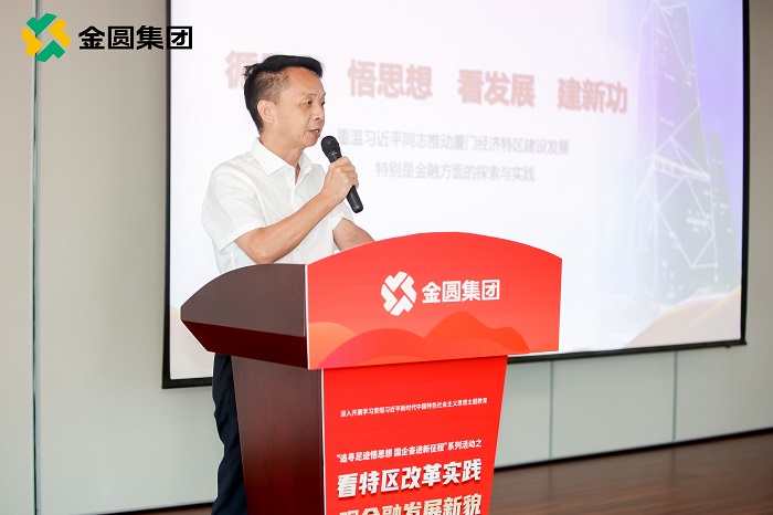 8月30日,厦门国资系统“追寻足迹悟思想 国企奋进新征程”系列活动之“看特区改革实践,观金融发展新貌”主题活动在金圆集团举办。活动由厦门市国资委党委、厦门市财政局机关党委、厦门市国资委团委主办,厦门金圆集团党委、团委承办,旨在扎实推动学习贯彻习近平新时代中国特色社会主义思想主题教育走深走实,深刻领会和把握习近平总书记关于金融工作重要论述的核心要义与丰富内涵。