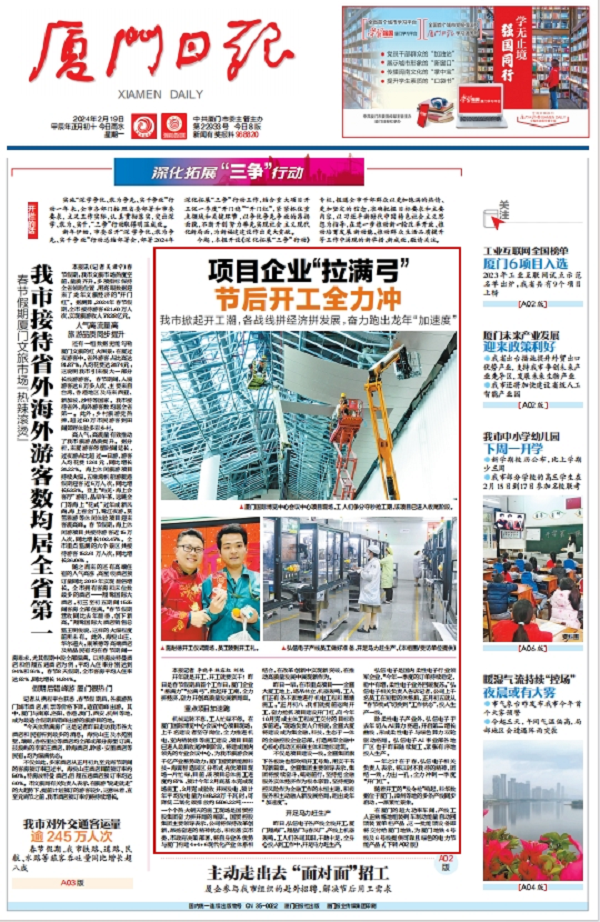 2月19日《厦门日报》头版刊发报道