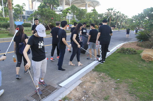 会后,创投公司全体步行前往金砖会场附近沙滩,并一路拾捡白色垃圾。