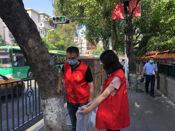11月6日,根据市文明办《关于在全市开展“文明健康界家园,扮美鹭岛庆佳节”活动的通知》,金圆集团组织本部多名党员干部到“双报到”单位厦港街道南华社区参与洁净家园的志愿服务活动。志愿者们拿着垃圾夹,对一些卫生死角的垃圾进行清理,对于车辆乱推乱放进行整理,美化房前屋后。