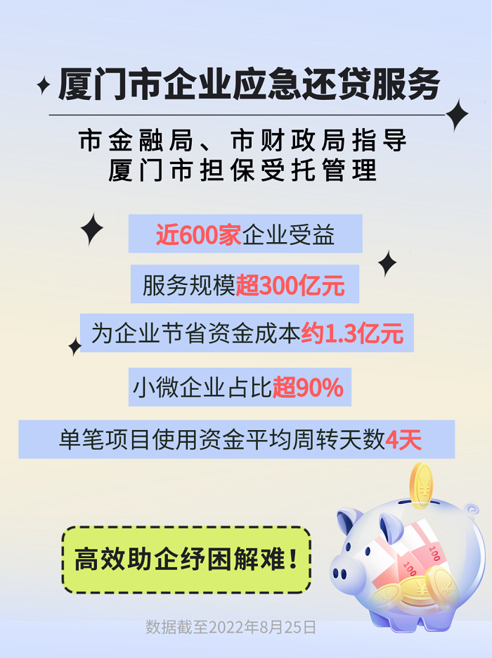 未来,厦门市担保将继续履行好管理人的职责,加大宣传推广力度,让更多企业了解应急还贷服务,积极推动应急还贷服务“落到实处、见到实效”,有效化解企业流动性风险,助力打造健康稳定的金融生态。