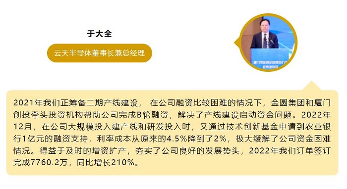 当前,在全国上下 “拼经济”的浪潮中,要跑出高质量发展“加速度”,迫切需要释放政策惠企效能,加大普惠金融服务,激发企业发展活力。当天,现场举行了2023年厦门市部分增资扩产项目银企签约仪式,共有8对银企分别签订了厦门市技术创新基金和增信基金意向融资协议,以金融之力帮助市场主体降成本、增活力,解决“燃眉之急”。