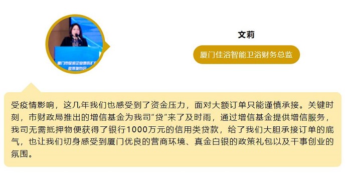 厦门市担保受托管理的中小企业融资增信基金,运用“财政政策 担保”改善融资难,累计为超4500户中小企业提供153亿元的信用类贷款。