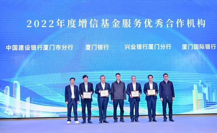 兴业银行厦门分行、厦门银行、厦门国际银行、建设银行厦门市分行获评2022年度增信基金优秀合作银行。