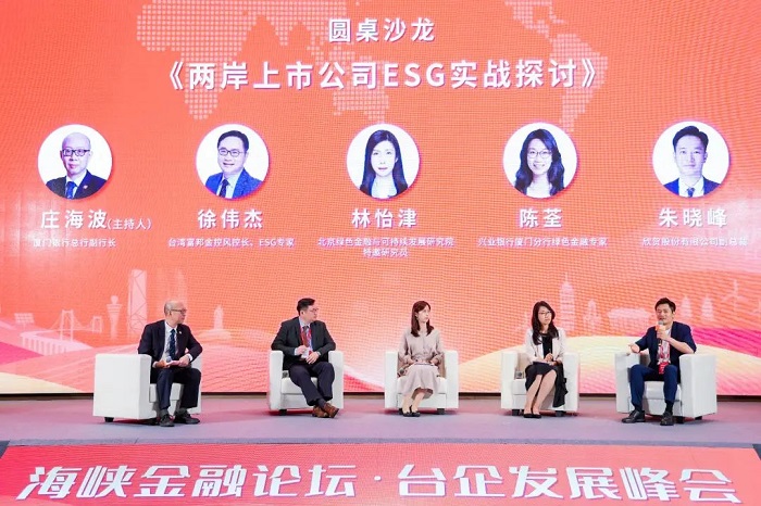 为响应绿色金融国家战略,聚焦esg推动企业可持续发展,本次论坛设置“两岸上市公司esg实战探讨”圆桌沙龙环节,探讨esg相关理念及实操经验。厦门银行总行副行长庄海波、富邦金控风控长徐伟杰、北京绿金院特邀研究员林怡津、兴业银行绿色金融专家陈荃、欣贺股份副总裁朱晓峰等绿色金融领域的资深学者及上市公司企业家以esg为出发点,进行了开放式的分享和研讨。
