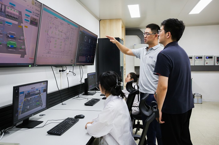 爱睿思ceo曹飙向金圆集团工作人员介绍投产情况。