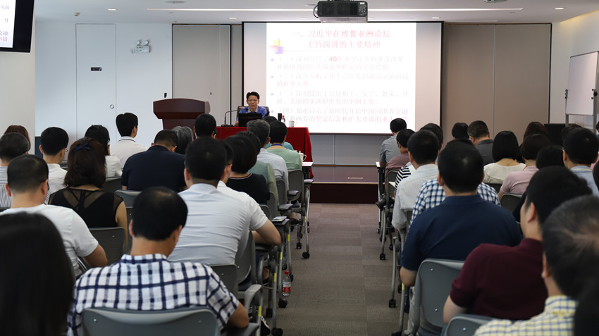 为深入学习贯彻习近平总书记在博鳌亚洲论坛2018年年会开幕式和庆祝海南建省办经济特区30周年大会上重要讲话精神,进一步提振精气神、推动集团全体干部在新时代厦门经济特区建设中建功立业,525日上午,金圆集团特别邀请厦门市委党校学术委员会委员、统战部主任周明伟进企业做《习近平总书记在博鳌亚洲论坛重要讲话精神及海南省战略意义》专题讲座,集团中层及以上领导干部、各党支部书记和委员、集团青年智库成员等近百人参加讲座。