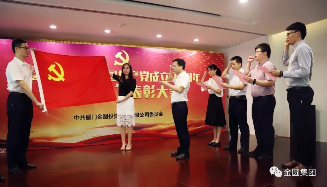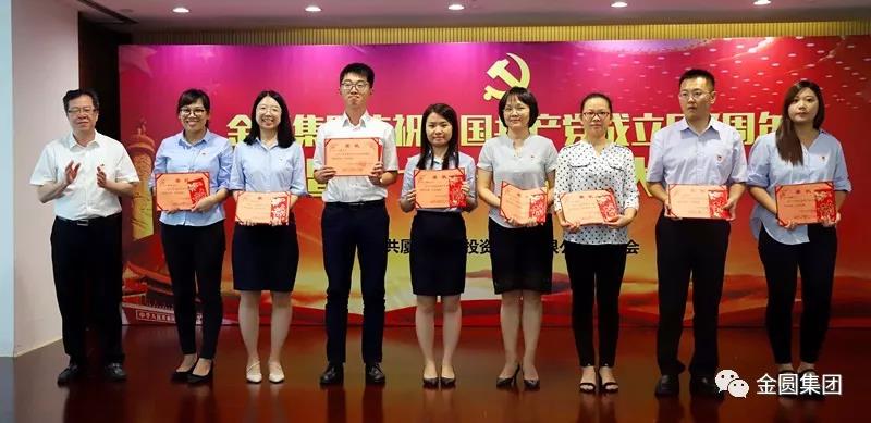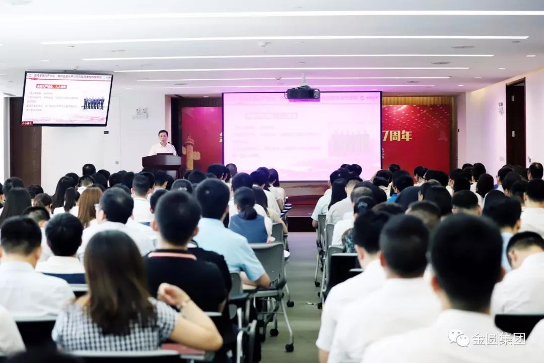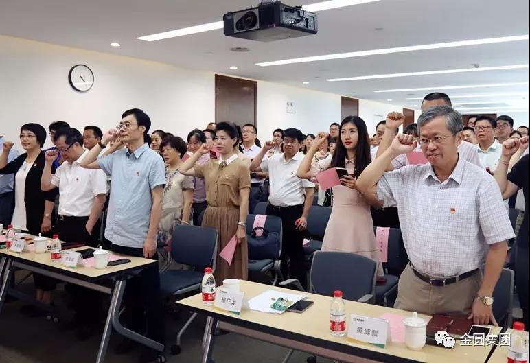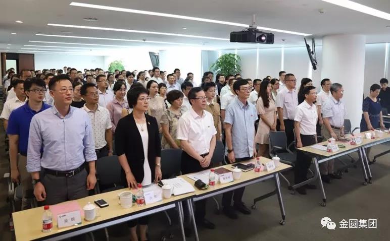 为深入贯彻落实习近平新时代中国特色社会主义思想和党的十九大精神,金圆集团于7月9日下午召开党员大会,纪念建党97周年和改革开放40周年,表彰一批先进集体和优秀个人,重温入党誓词。集团领导班子成员、全体中层干部、党员代表及共建支部党员代表近200人参加了大会。