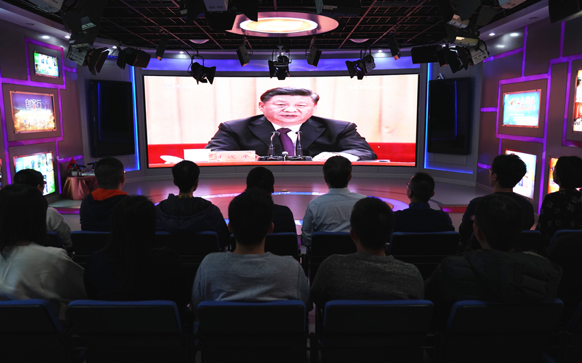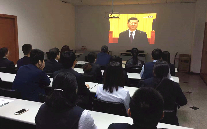 庆祝改革开放40周年大会于1218日上午在人民大会堂召开。金圆集团党委组织70余名干部职工在48层会议室集中观看庆祝大会。