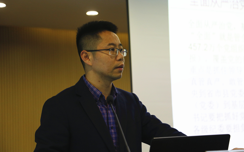 市直机关党工委组织处干部林聪辉以“全面从严治党,重整行装再出发为题,讲解基层党建的主要任务和党员教育管理的规范要求,结合工作实践经验,从能说会道四个基本功,分享个人对党务干部工作基本素质的理解。