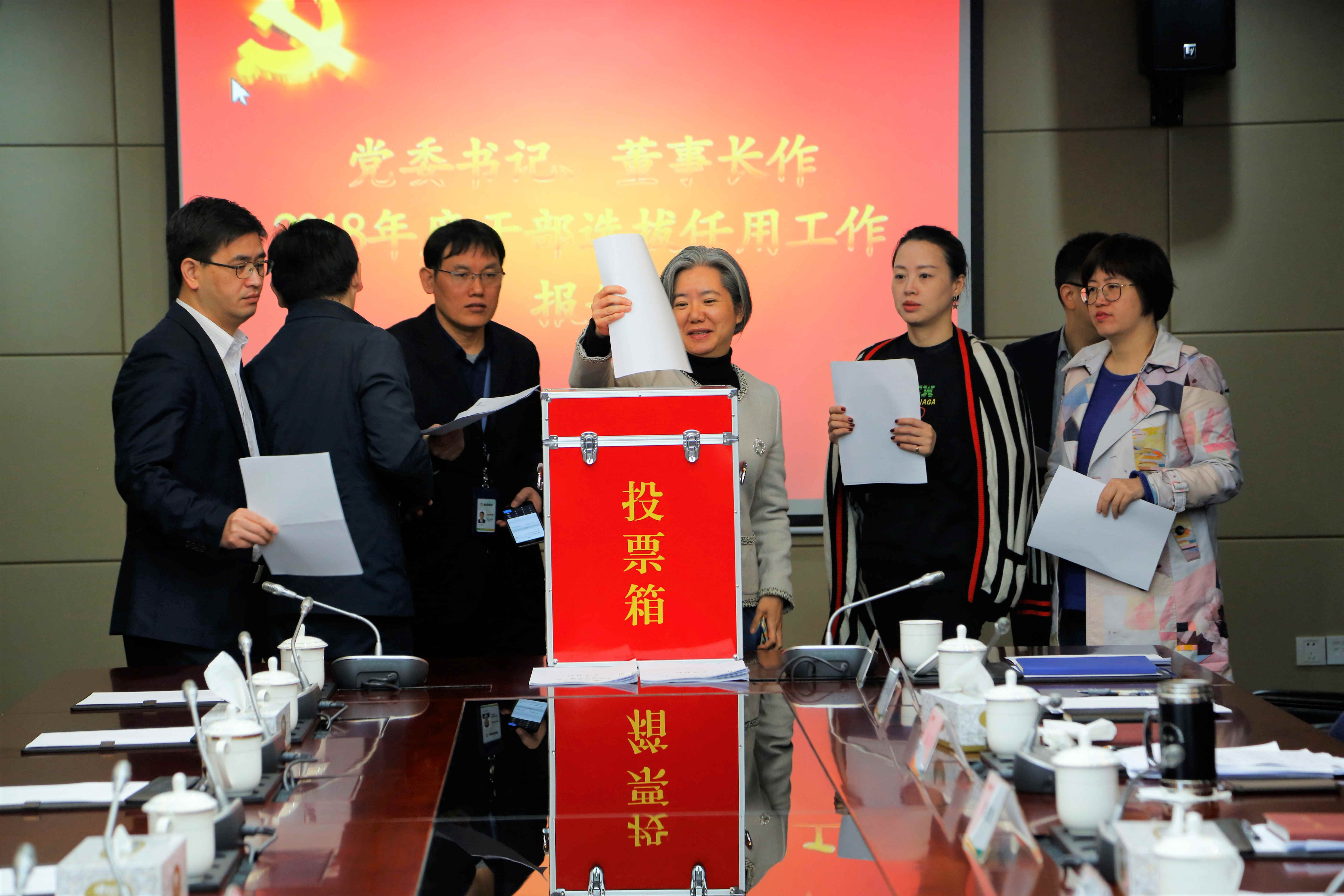 最后,参会人员以无记名投票方式,对集团领导班子和班子成员年度工作情况、年度干部选拔任用工作情况及个人述责述廉情况进行民主评议。