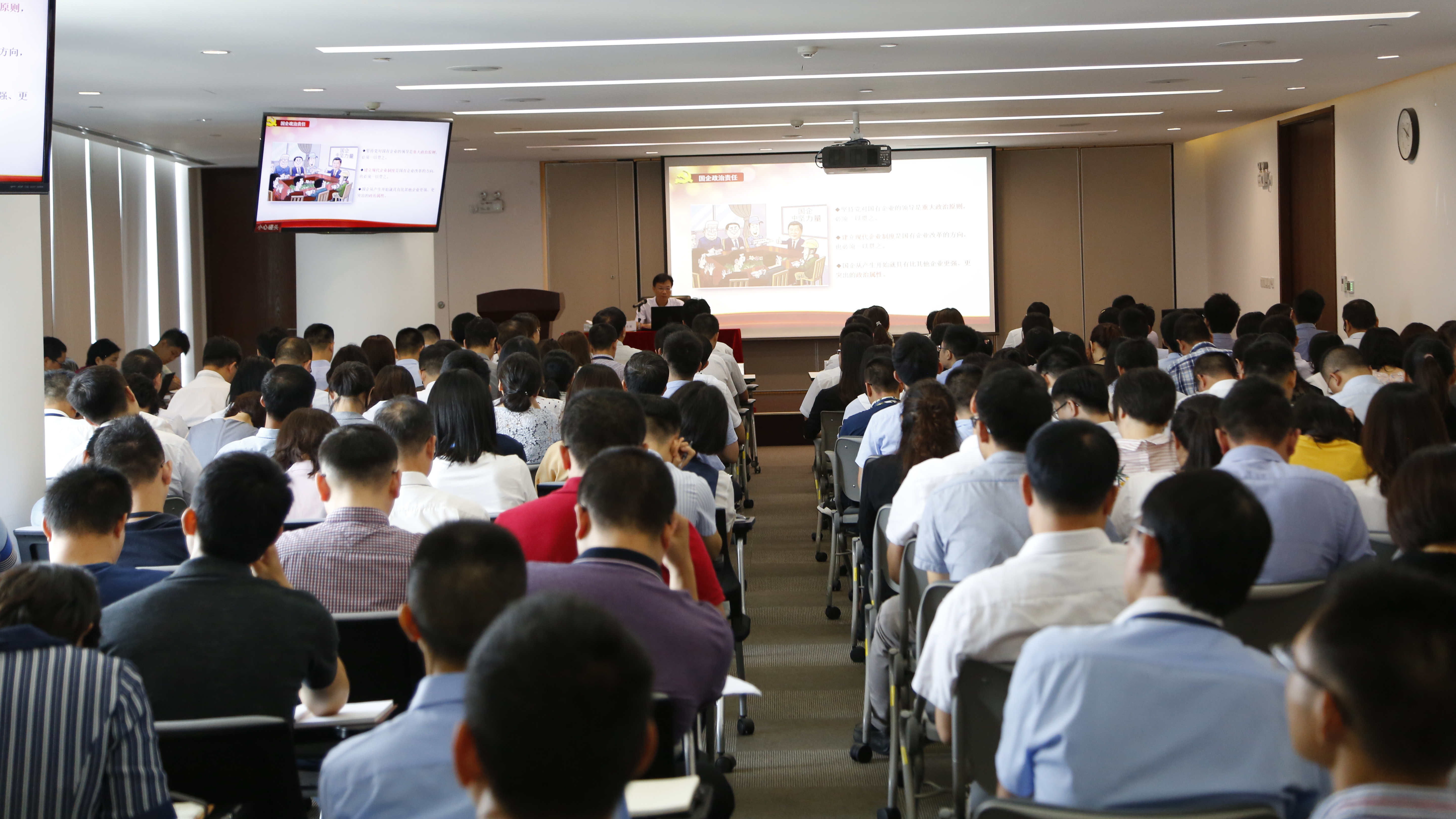檀庄龙同志结合自身对学习习近平新时代中国特色社会主义思想和“不忘初心、牢记使命”重要论述等内容的认识体会,从政治建设的重要性、现实意义和新时代党的政治建设新内涵讲起,带领全体党员深刻认识党的政治建设与党的建设、履行国企责任和主题教育的关系,深刻理解党的政治建设对国企的内在要求,使全体党员深化了对党的政治建设的再认识,深化了对初心和使命的理解。