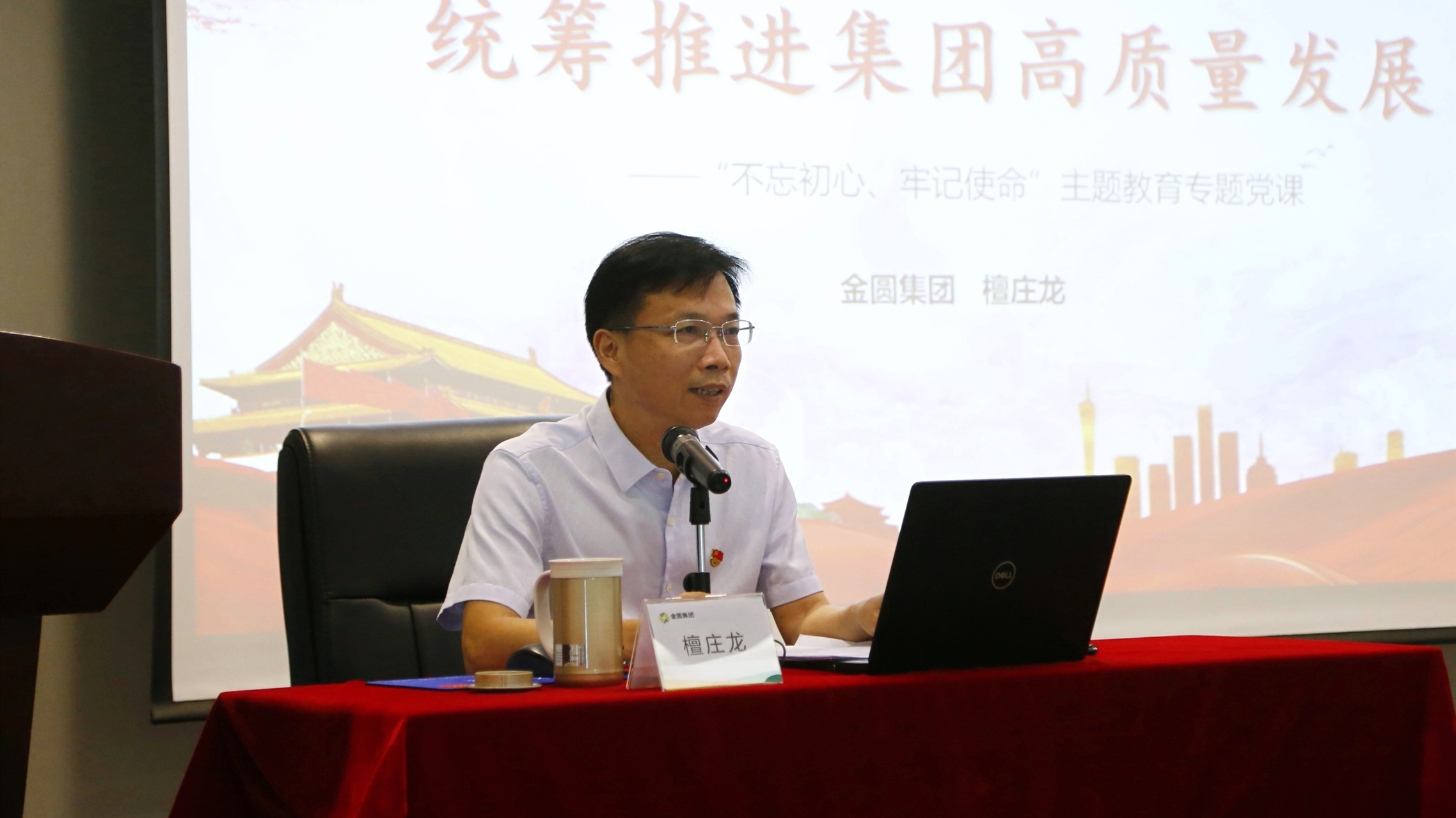 为深入贯彻落实习近平新时代中国特色社会主义思想,扎实推进“不忘初心、牢记使命”主题教育,激励全体党员增强“四个意识”,坚定“四个自信”,做到“两个维护”,7月23日上午,集团党委书记、董事长檀庄龙以“加强党的政治建设,统筹推进集团高质量发展”为题,向200多名党员干部讲专题党课。