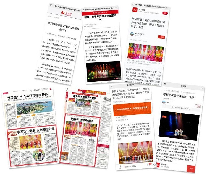 人民网、中新社、学习强国、福建日报、厦门日报、厦门晚报、新浪、观澜财经等多家媒体均刊发报道,点赞金圆集团党史学习教育的创新形式。