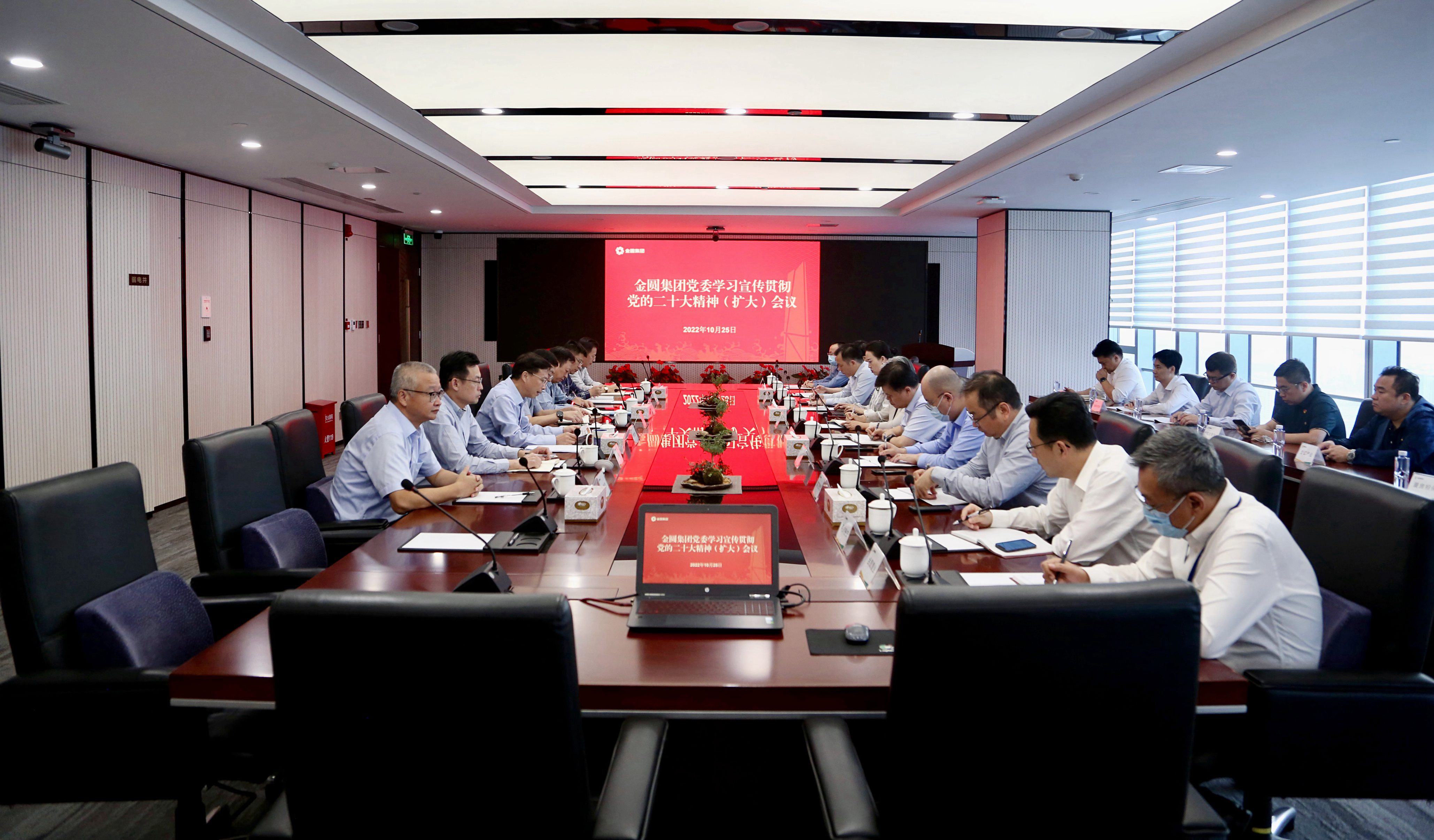 10月25日下午,金圆集团党委召开扩大会议,传达学习党的二十大和党的十九届七中全会、二十届一中全会精神,以及省委常委会(扩大)会议、市委常委会(扩大)会议精神,研究部署集团初步贯彻落实意见。集团党委书记、董事长檀庄龙主持会议。集团领导班子成员、下属党组织负责人和集团职能部门、子公司主要负责人参加会议。